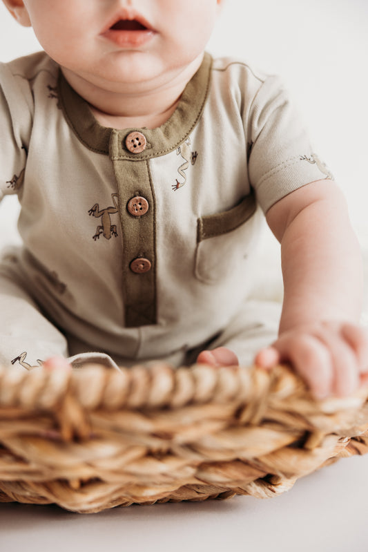 Henley Long Romper - Frogs